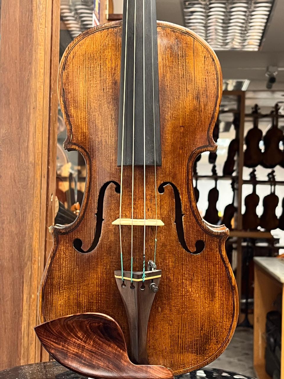 Belíssimo violino de autor Italiano, do início do Séc. 18, Ano 1730. Um raríssimo violino, uma autêntica obra de arte. Construído 100% à mão, com madeiras nobres e antigas, luthieria fina, fundo inteiro com raras e exóticas marezzaturas. Timbre excepecional, maduro, compacto, definido, responsivo e equilibrado. Construído dentro das medidas padrões da época, influenciadas pelo mestre Guarnierius. Este violino tem o comprimento de 352mm, sendo um violino construído dentro das medidas adotadas pelos grandes mestres da época, que visavam qualidade de timbre emais conforto para os músicos. Nível Profissional Solista.